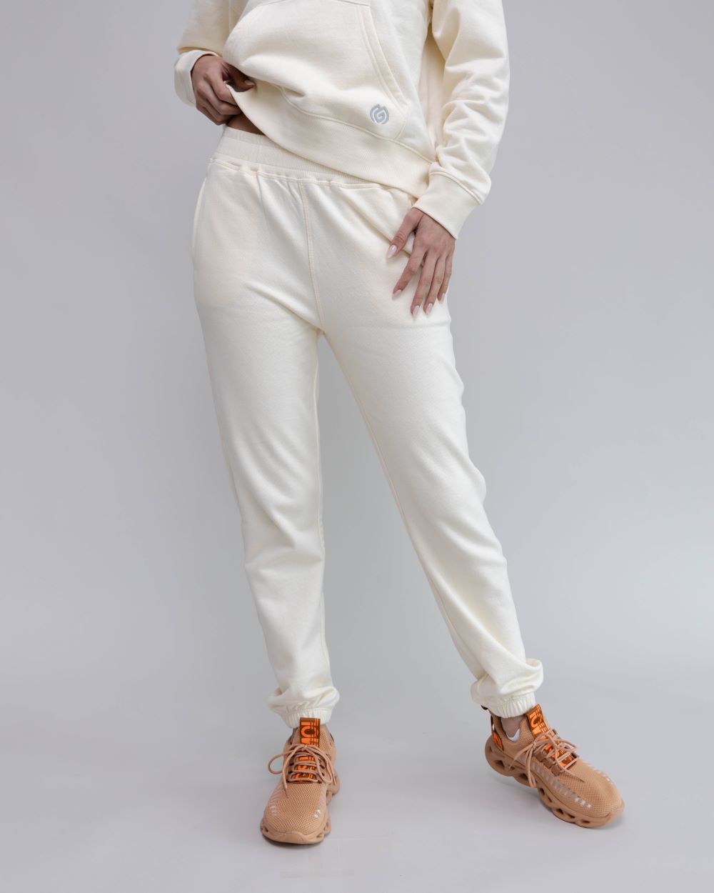 Metaglam Odalisque Sweatpants in elegant off-white. Made from 100% premium Peruvian cotton, these pants provide a soft, warm feel that’s perfect for any winter day or travel adventure. The relaxed fit and elastic waistband ensure a secure, comfortable wear, while side pockets and a back pocket featuring the Metaglam logo add both functionality and style.